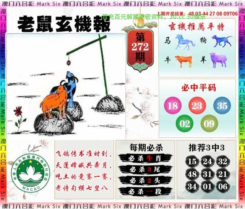 271期『四头爆中』❀『0124头』开:鼠06准 |