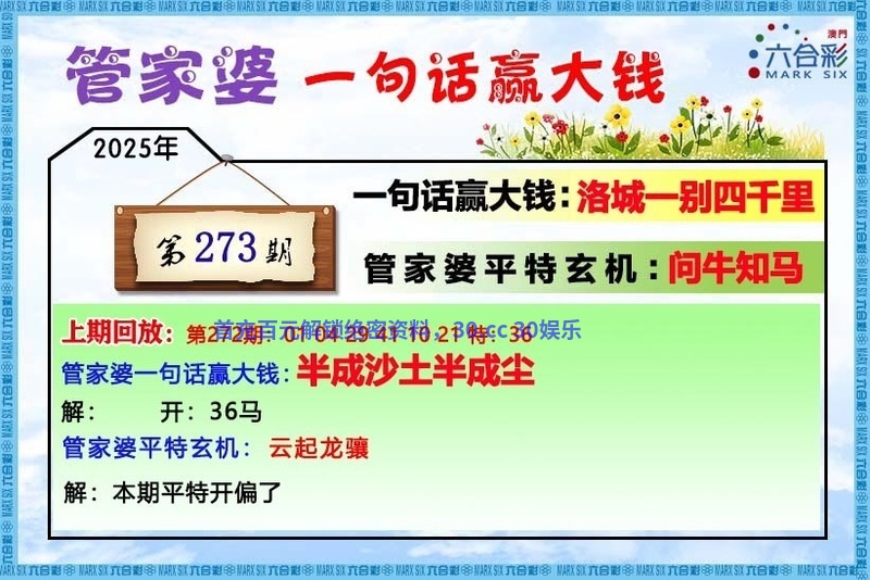 272期四肖 | 兔马龙蛇 | 开:马36 |