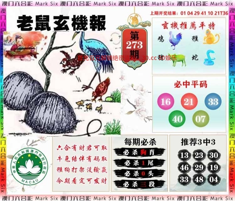 273期 | 羊 | 蓝单 | 7尾 | 开虎04 |