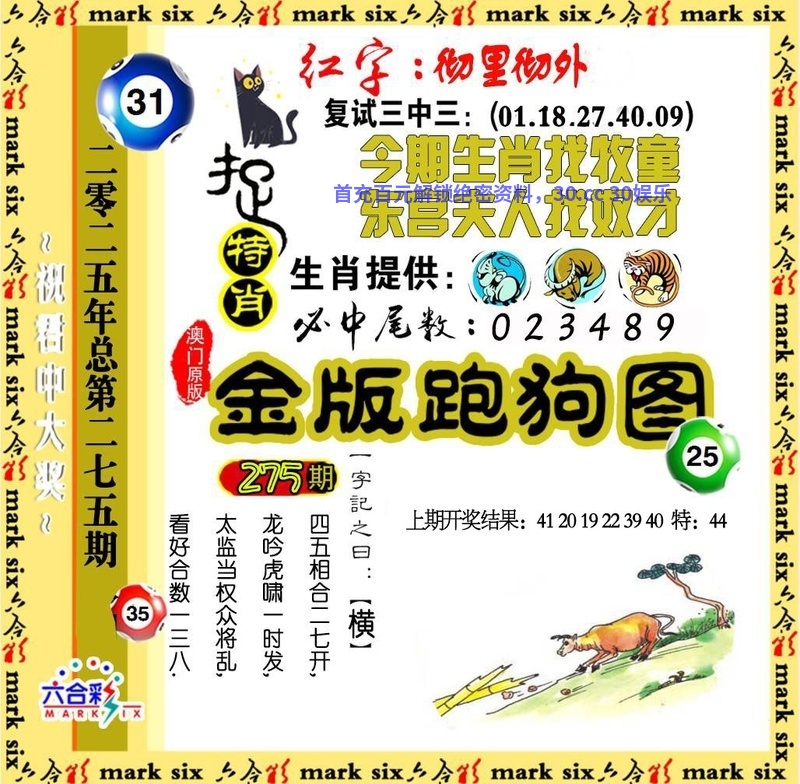 266期九肖 | 牛虎鼠羊龙猴兔蛇马 | 开:牛41 |